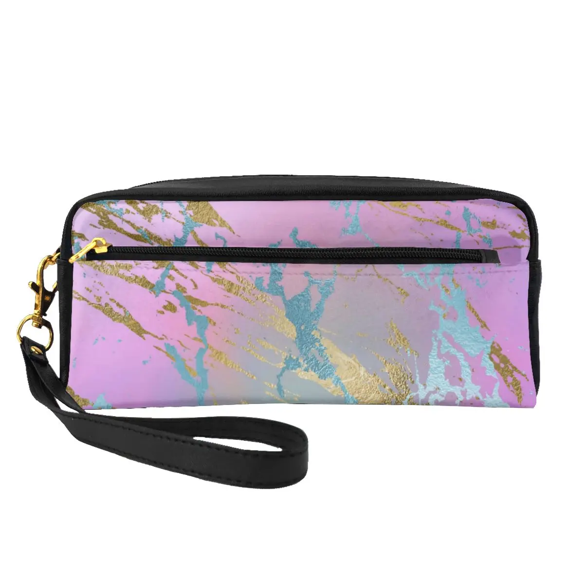 Золотистые металлические кожаные Органайзеры для хранения, Женская милая Пастельная Омбре Акварельная домашняя вместительная косметичка,...
