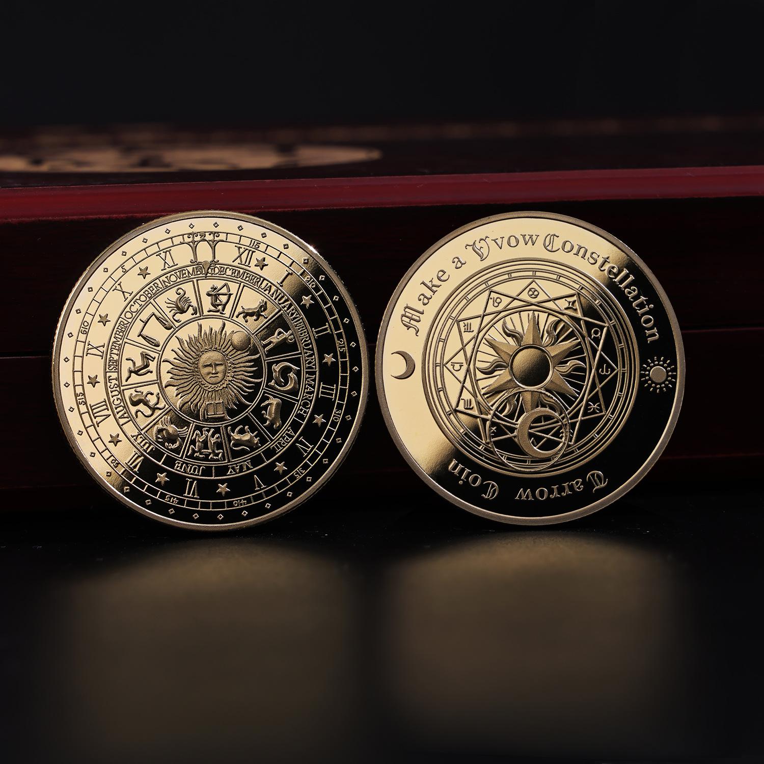 Золотое Таро, монета желаний, счастливая монета, позолоченная монета, солнце, лунный свет, созвездие, памятная монета, монета любви 2pcs золотой