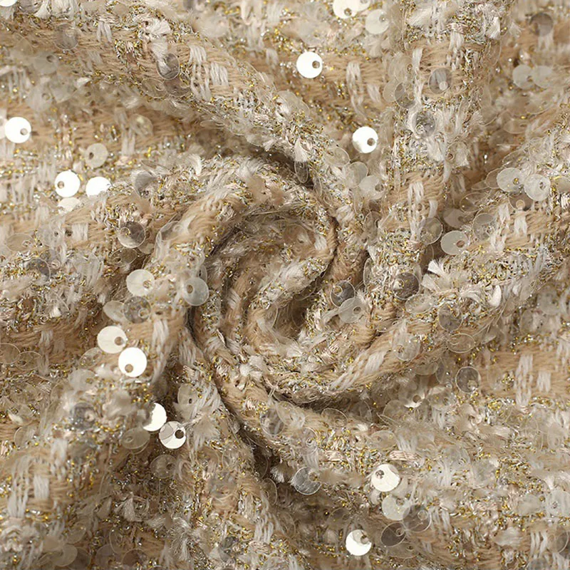 Золотой или серый с блестками, окрашенная в пряже плетеная твидовая ткань для женщин, осенняя куртка, платье, костюмы, пальто, ткань «сделай сам», швейный материал