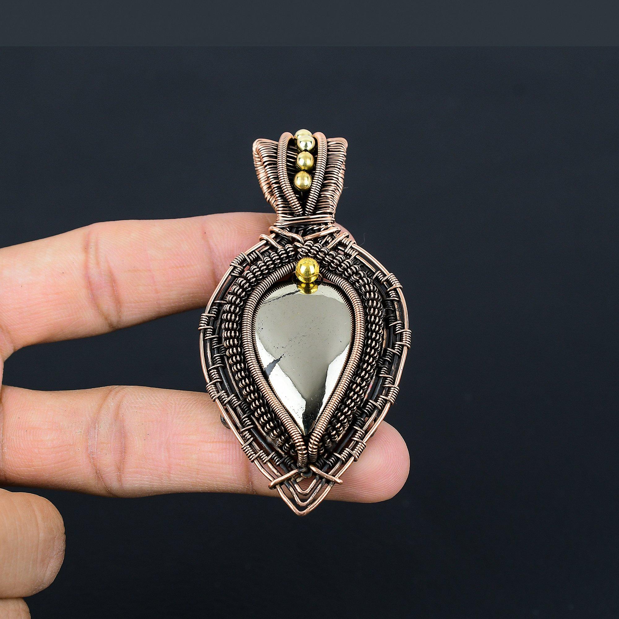 Золотой кулон из пирита апачей, украшение, обернутое медной проволокой 999 пробы, кулон с драгоценным камнем, подарок для нее, изящное украшение ручной работы 2.55 Inches