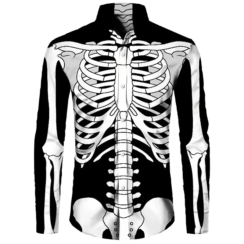 Funny 3D Skull Print Men's Shirts Carnival Halloween Cosplay Long-sleeved shirt Unisex Streetwear Hip Hop Trend Casual Clothing