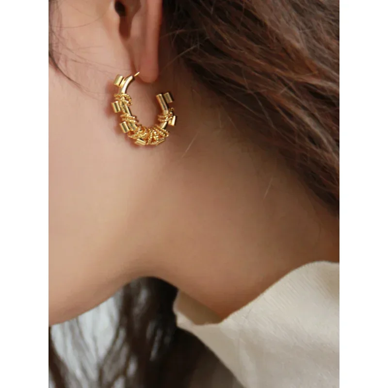 Золотые серьги в форме G, женские летние серьги-ниши в стиле INS, современные уникальные темпераментные стильные серьги для создания атмосферы