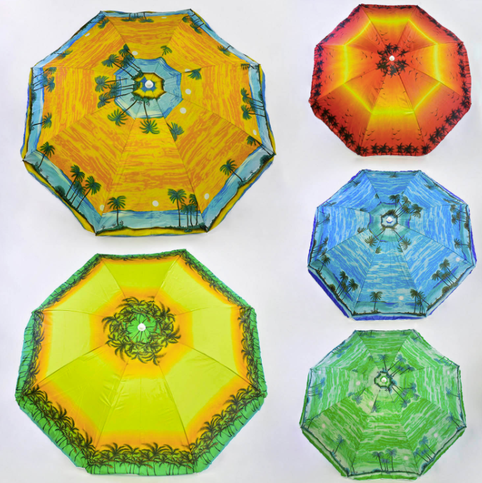 Собираешься на море? Не забудь прихватить пляжный зонт - необходимый атрибут для летнего отдыха под открытым небом.Зонт имеет достаточно устойчивый корпус и специальные спицы в форме лепестков для дополнительной фиксации.