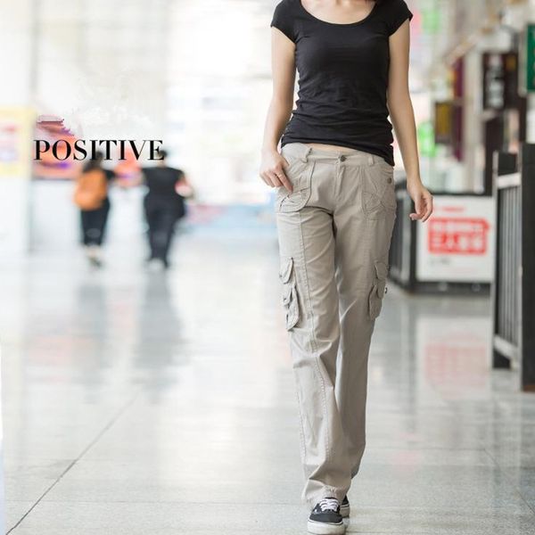 pantalon femme 2021 spring women straight loose denim overalls trousers ladies girls workout multi-pocket joggers cargo pants, Red