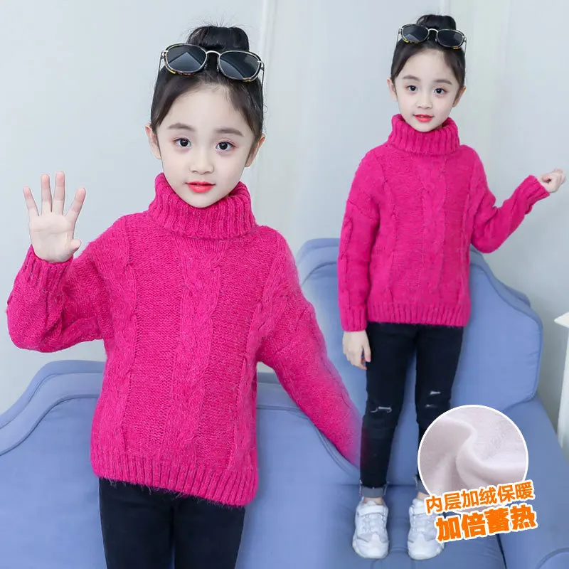 Girl'S Sweater 2020 New Style Middle And Large Children High Collar Sweater GIRL'S Autumn And Winter Thick Warm Knitted Pullover