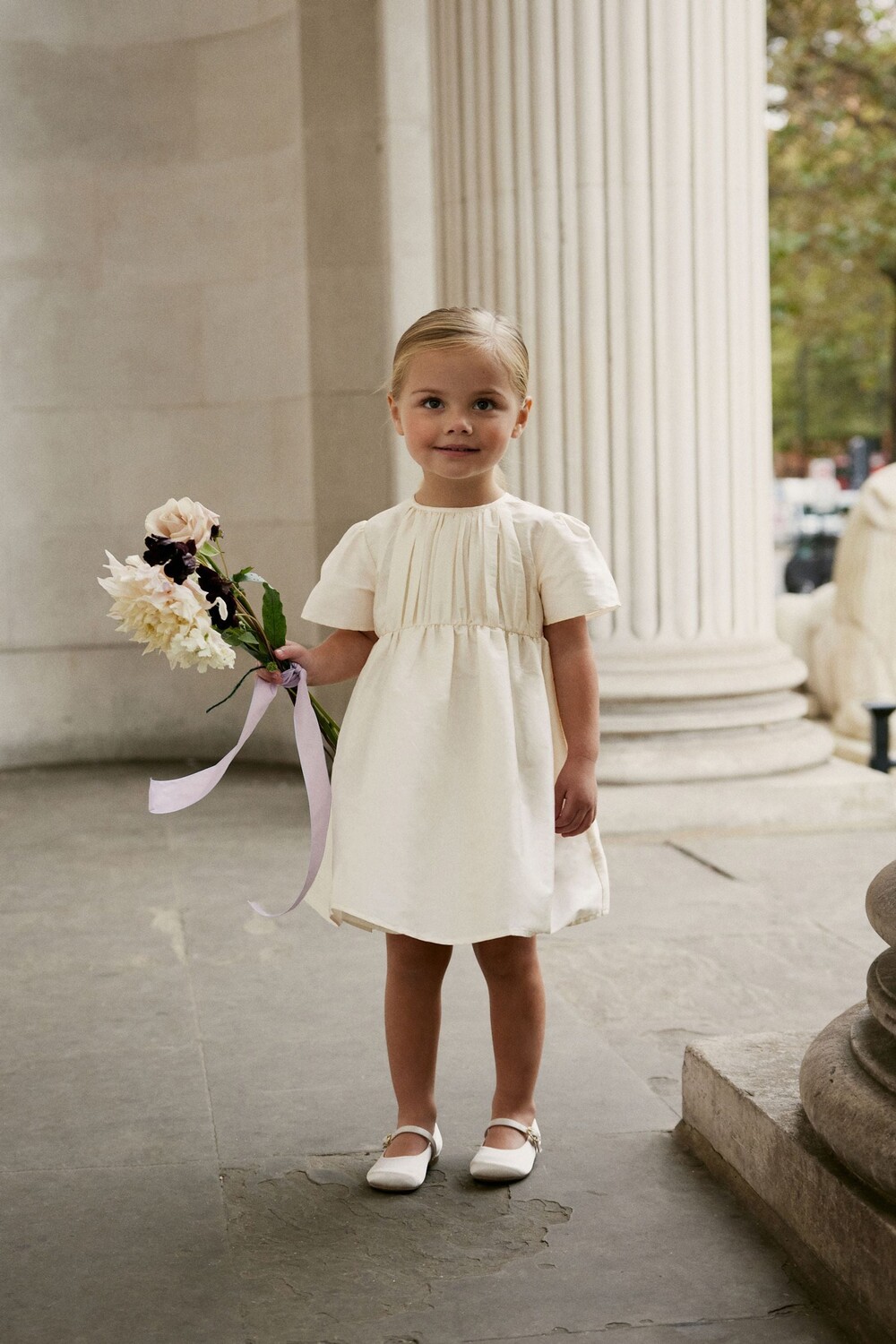 Плиссированное платье из тафты с короткими рукавами (от 3 месяцев до 10 лет) Next, бежевый