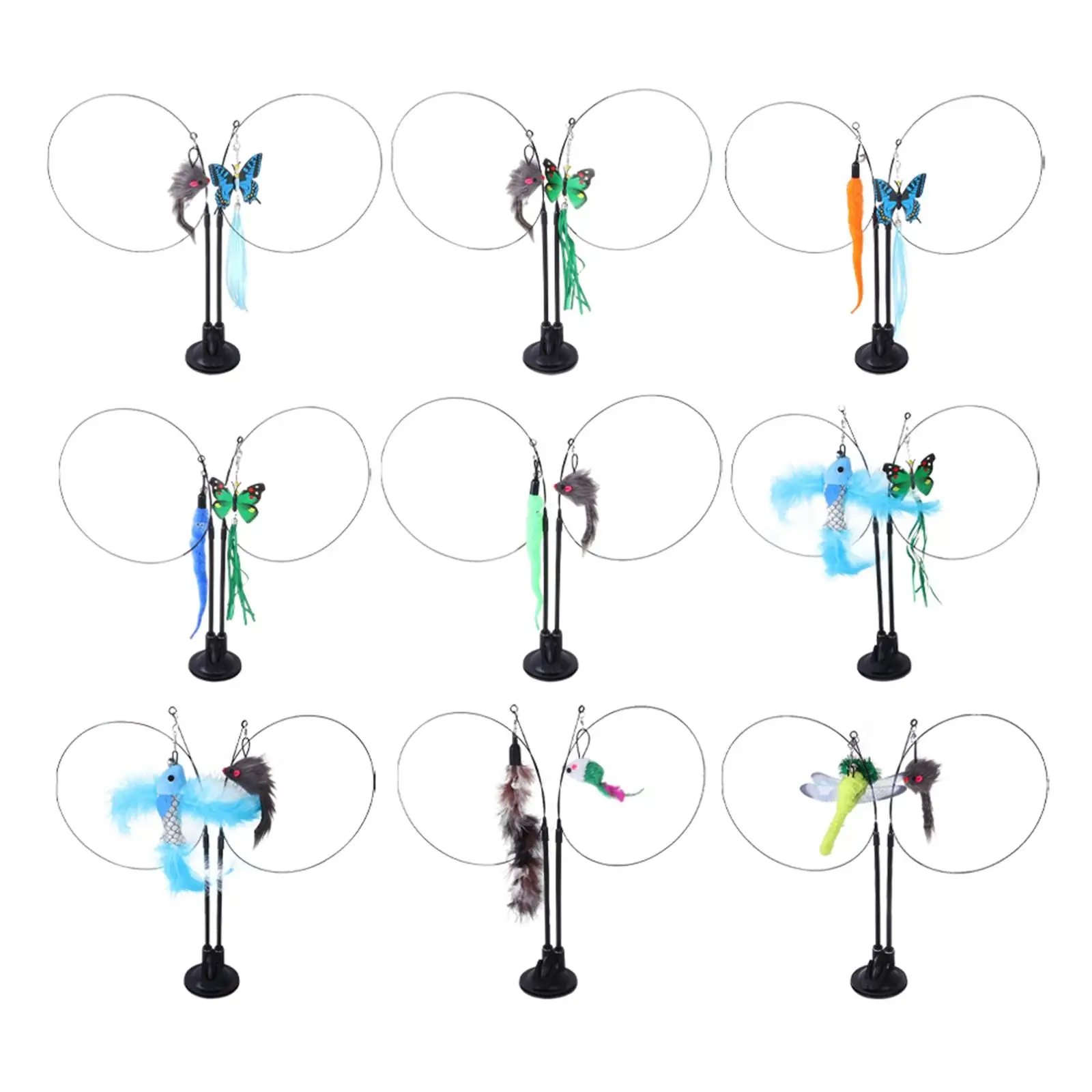 Игрушечная палочка с кошачьими перьями, длинная Когтеточка из стальной проволоки, для котят, для тренировок с присоской, интерактивные игру...