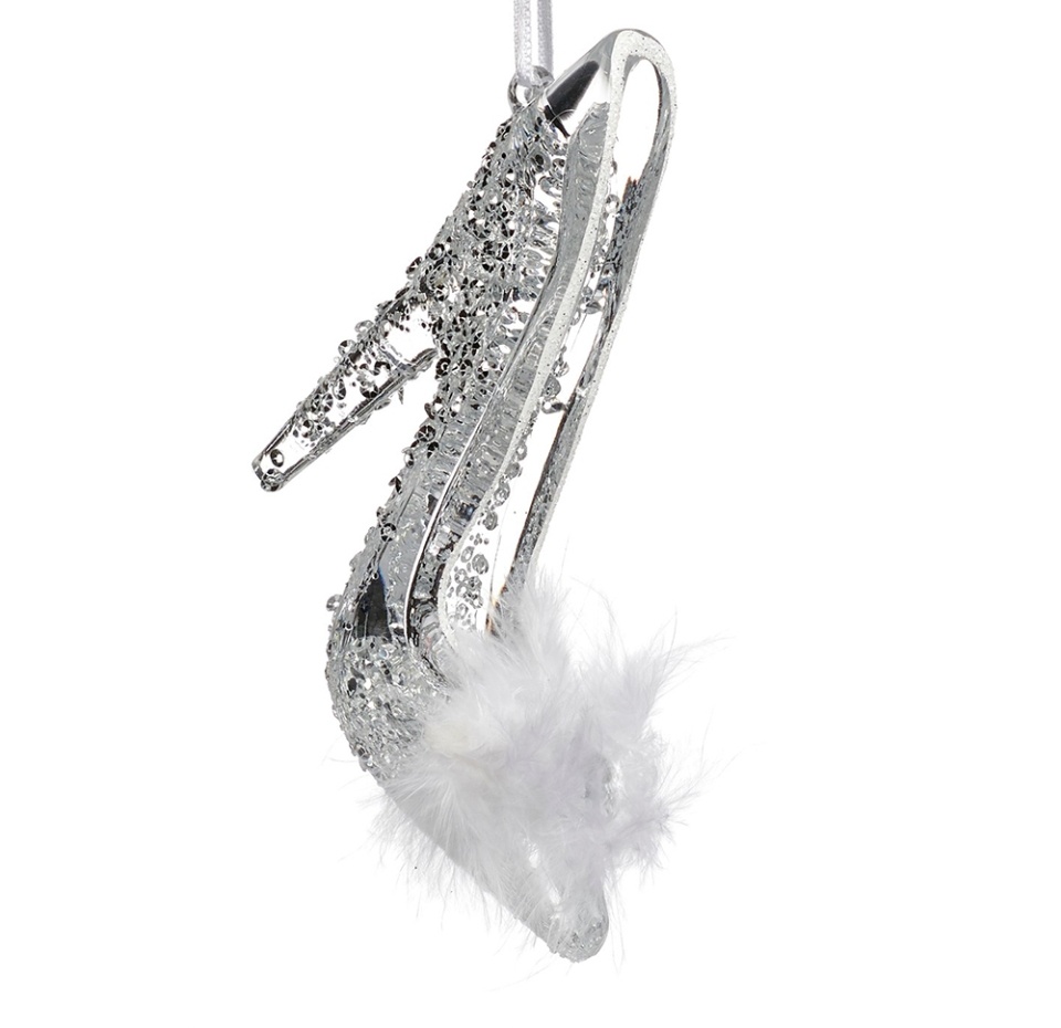 Игрушка для елки Goodwill Коллекция Традиции Туфелька на высоком каблуке с пером и камнями 10 см, цвет прозрачный, 1 шт, Бельгия