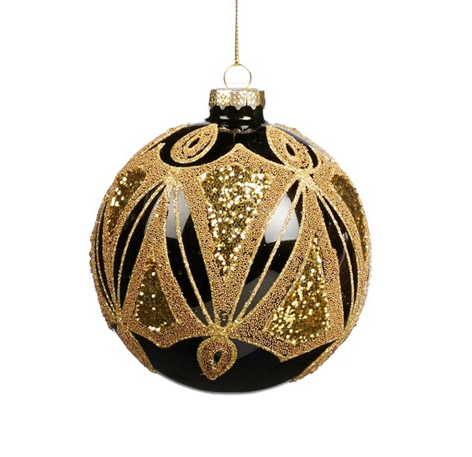 Игрушка для елки Goodwill "Коллекция Традиции" Шар круглый/капля/луковица 10 см, в ассортименте, цвет черный с золотым декором, стекло, 1 шт, Бельгия