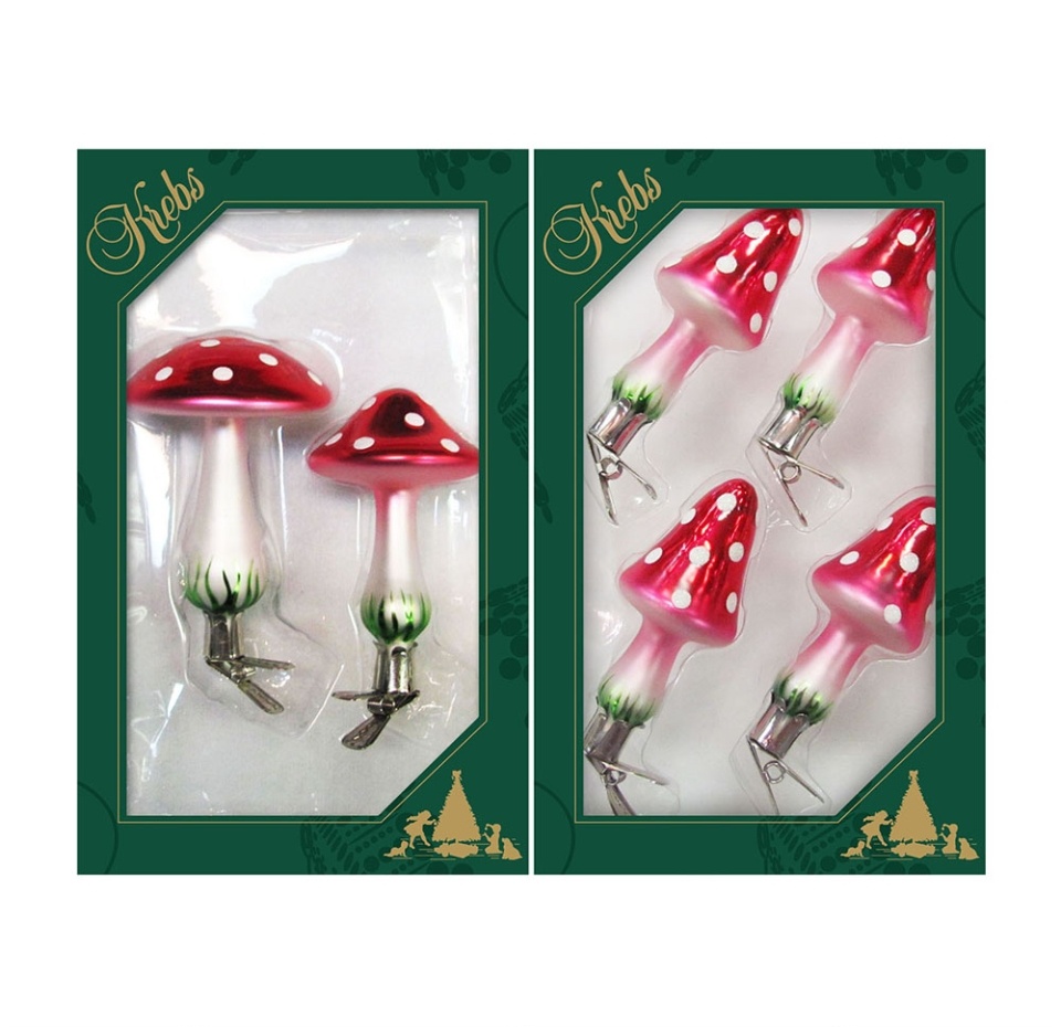 Игрушки для елки Krebs "Коллекция Традиции" Грибы Мухоморы на клипсе маленькие и большие, 10 см, упаковке в ассортименте 4шт/2шт, Германия