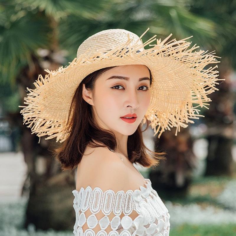 Изготовленная вручную соломенная шляпа из черной ленты из рафии Burr, универсальная модная интернет-знаменитость, защита от солнца, женская, с большим капюшоном One size