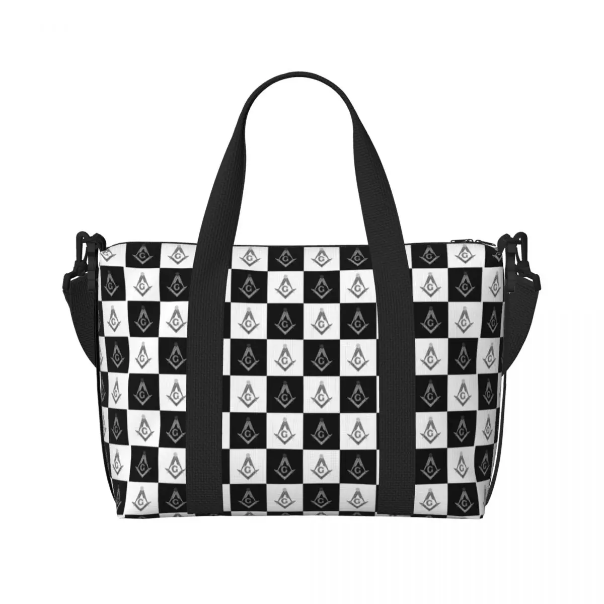 Изготовленная на заказ масонская клетчатая черно-белая сумка-тоут с узором, женская большая вместительная масонская пляжная дорожная сумка для спортзала