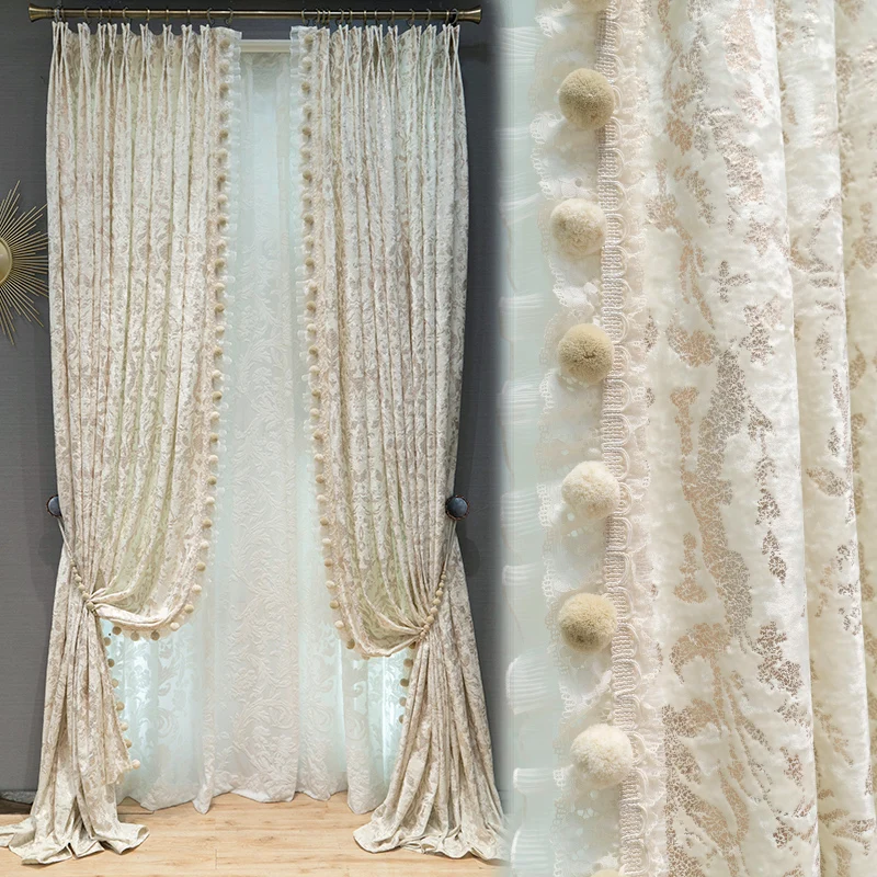 Изготовленная на заказ французская ледяная цветочная флокированная золотая тисненая белая штора для гостиной, спальни, затемняющая штора, тюлевая драпировка C2185
