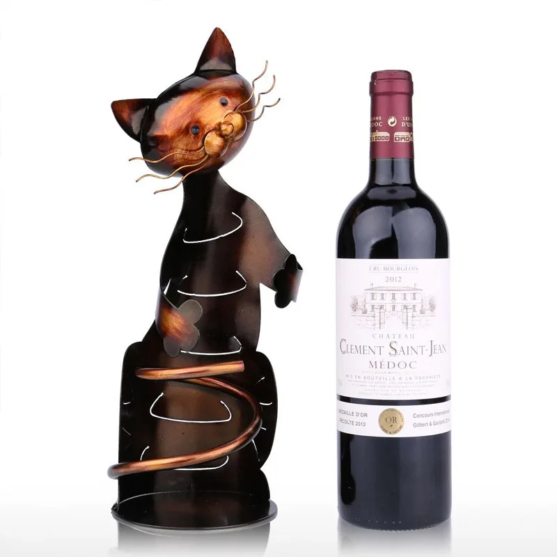 Изделия ручной работы из кованого железа, украшения "кошки" Винная рейка, домашняя гостиная, ТВ, украшение для шкафа, держатель для красного ...