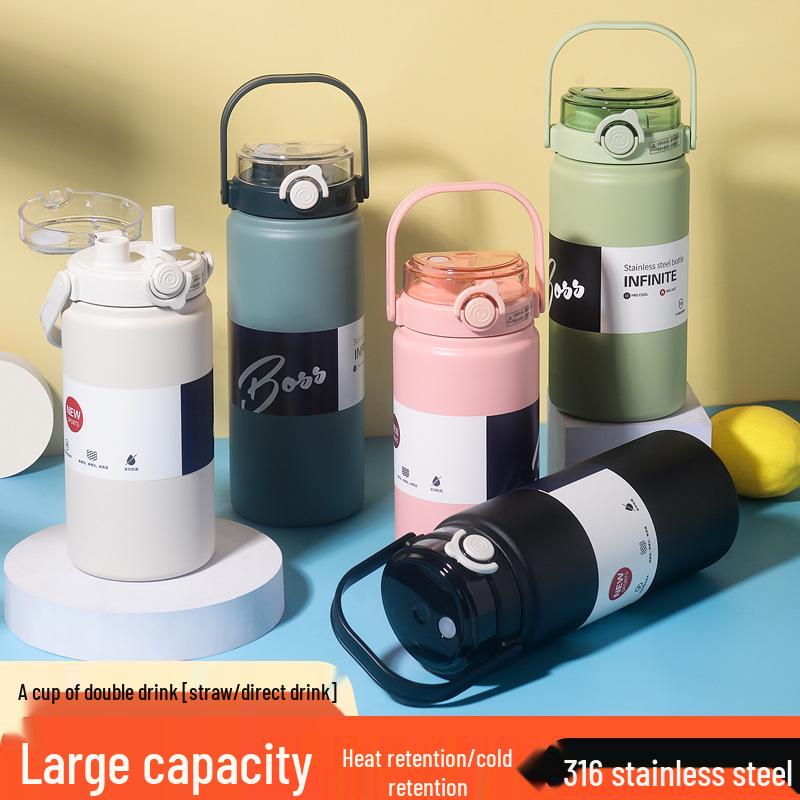 Изолированная чашка-соломинка из нержавеющей стали 316 - Большая вместимость, портативная для студентов 1000ml чёрный