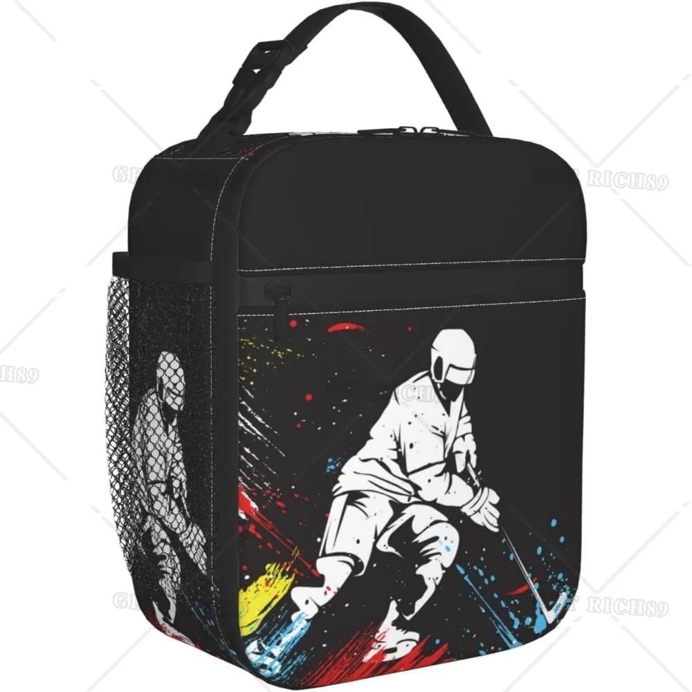 Изолированный ланч-бокс для хоккеиста для любителей спорта, мальчиков и девочек, черная термосумка-холодильник с держателем для бутылки с водой 26x21x11CM чёрный
