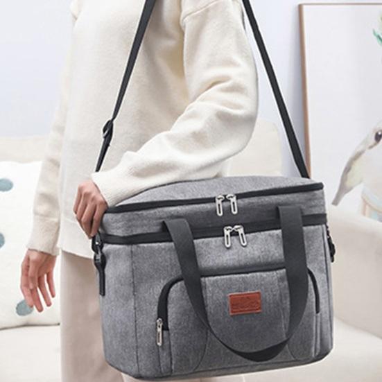 Изоляционная сумка, двухслойная сумка для еды большой емкости, сумка для обеда на молнии для вечеринок, пикников серый