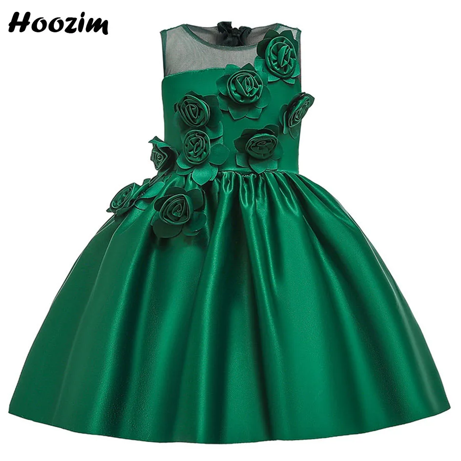 Изумрудно-зеленое платье с аппликацией, розово-красная ковровая дорожка, пышное платье для девочек 4-11 лет, официальное Сетчатое платье с рю...