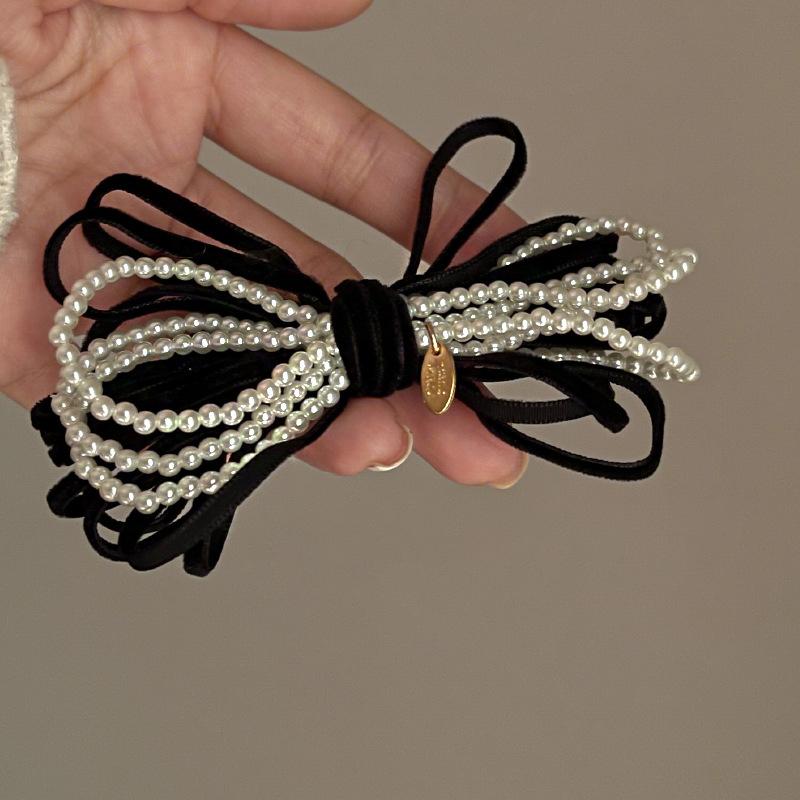 Изысканная заколка для волос с бантом из французского жемчужного бархата, легкая роскошь, высокий класс, фея, темперамент, ретро, аксессуары для волос, ювелирные изделия, подарки