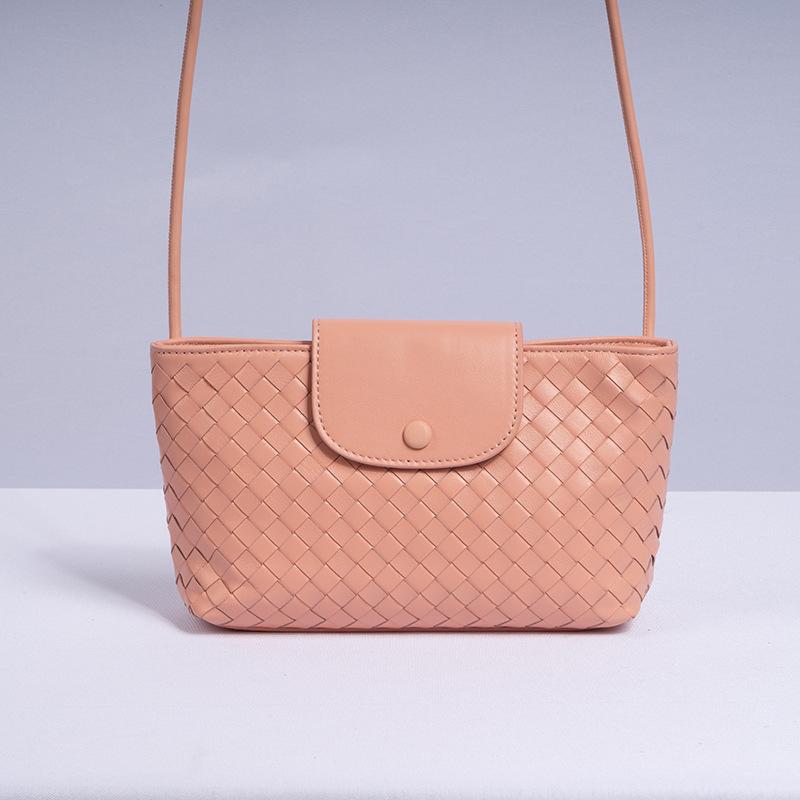 Изысканная и компактная женская сумка из натуральной кожи, плетеная сумка ручной работы из овчины, легкая сумка для телефона через плечо для девочек 20x6x13 розовый