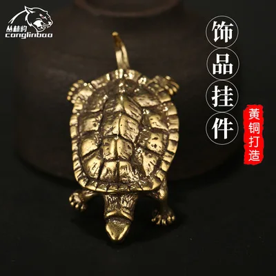 Изысканная ручная работа полированная латунь Золотая черепаха долговечность Черепаха брелок ретро украшения для автомобиля Чай Домашние ...