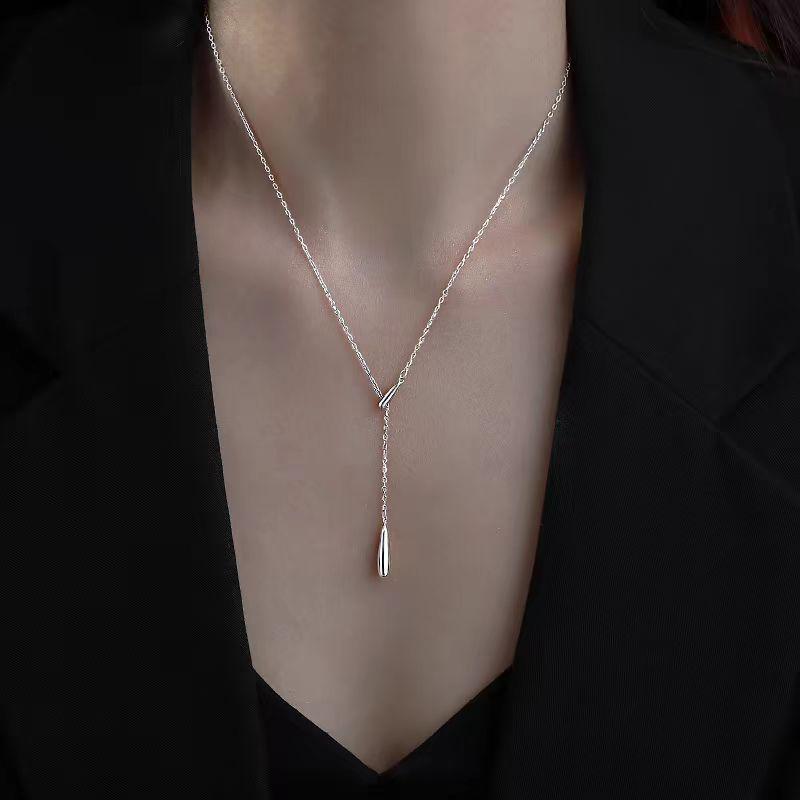 Изысканное Минималистичное Высококлассное Летнее Ожерелье-Капля с Кисточкой - Ключичное Титановая Сталь, Легкая Роскошь, Не Выцветает. серебряный