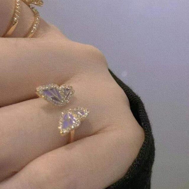 Изысканное кольцо с бабочкой, простое бриллиантовое женское кольцо, ретро-открытое кольцо, полное бриллиантов, ювелирные изделия для женщин класса люкс фиолетовый