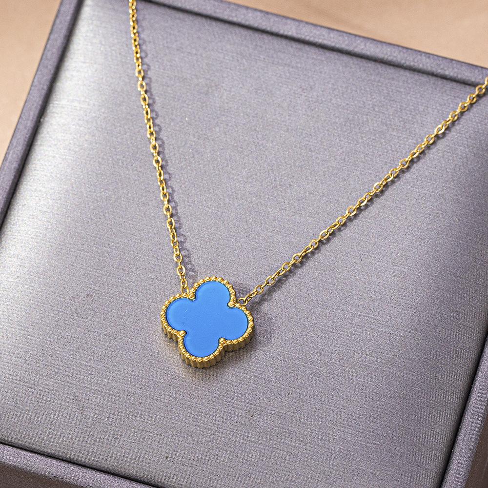 Изысканное ожерелье с четырьмя листами клевера, титановое стальное ожерелье, цепочка на ключицу, роскошное ожерелье премиум-класса Sense Of Light синий