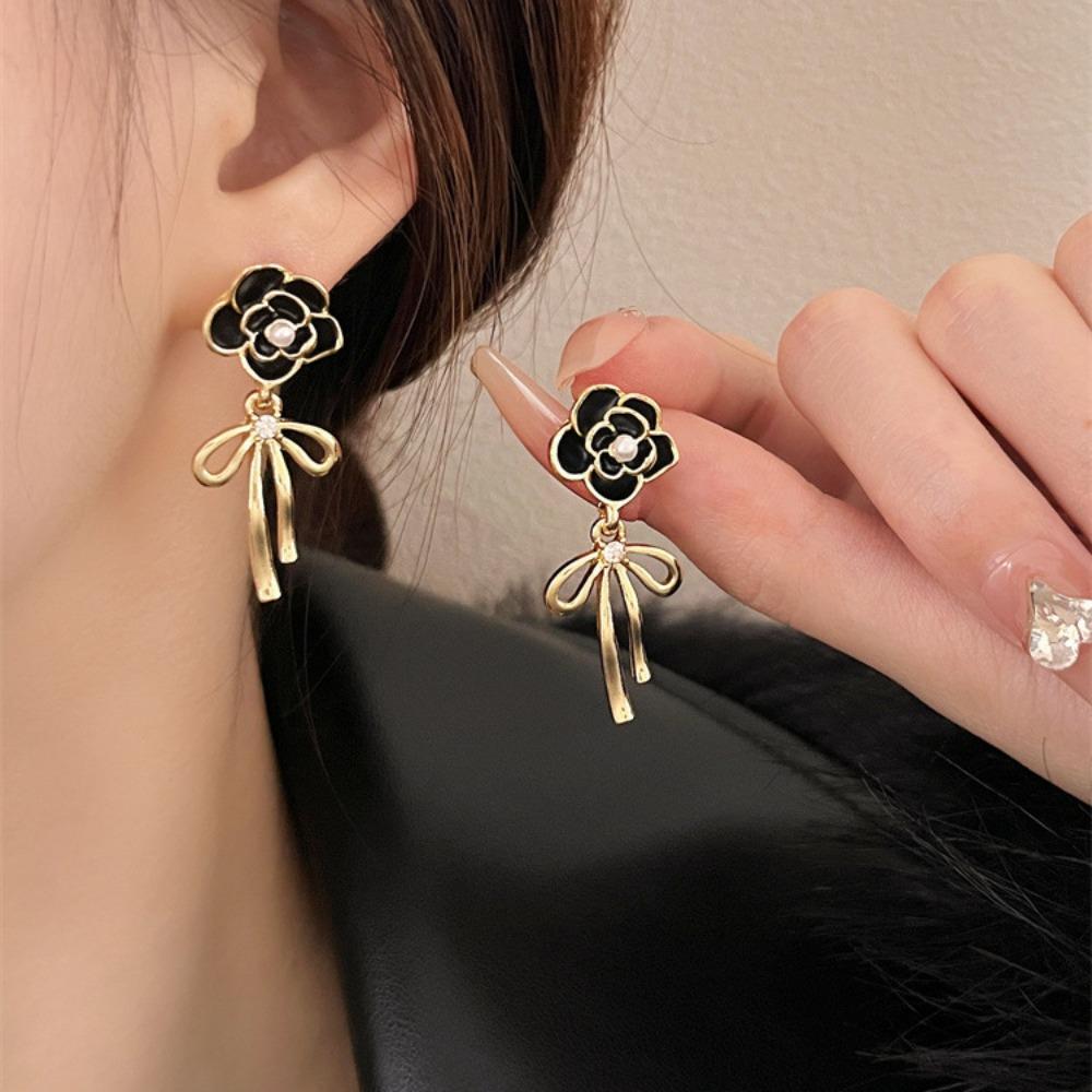 Изысканные длинные масляные серьги-бабочки со стразами и черной розой, серьги-бабочки для женщин/подарки
