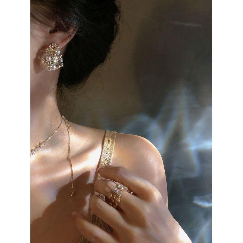 Изысканные, как Вы Южная Корея Цветок Капля воды Жемчуг Полые серьги Женские Серебряная игла Элегантная элегантность Легче всего сочетать Милые серьги 925 silver needle
