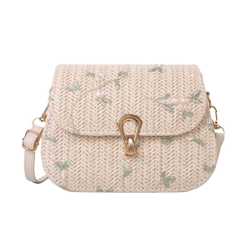 Изящная кружевная соломенная плетеная Сумка с цветами, сумка-седло, сумка через плечо, сумка-мессенджер на плечо для пляжного отдыха