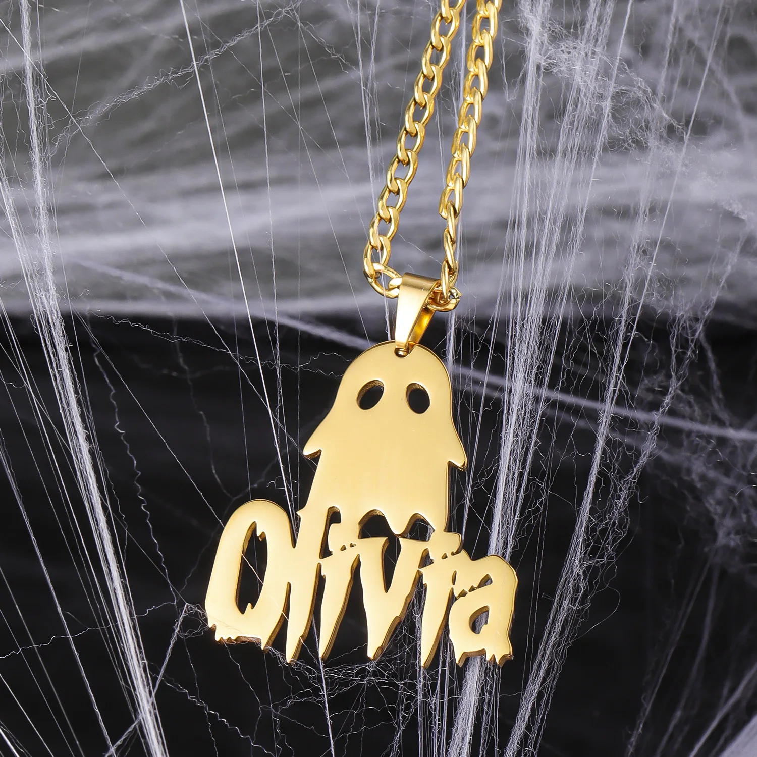 Изящное ожерелье с изображением летучей мыши-призрака, жуткий шрифт, персонализированное готическое ожерелье с именем, очаровательное имя призрака, милый подарок на Хэллоуин для детей, необычные подарки