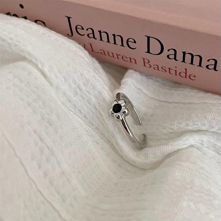Изящное хрустальное черное кольцо с цветочным узором для женщин, вдохновляющее элегантные и уникальные модные тенденции