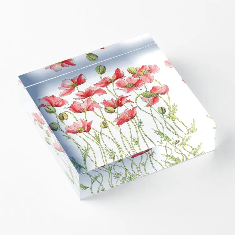 Иллюстрация Красного мака, акриловый блок, прозрачная подкладка, фотография процесса, милое украшение для доски, модное смешное семейное украшение