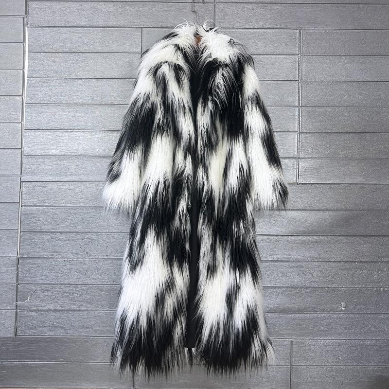 Имитация Пляжной Шерсти Жаккардовая Цветная Пушистая Меховая Куртка Женская Имитация Меха Удлиненный Костюмный Воротник Зимнее Женское Пальто XL