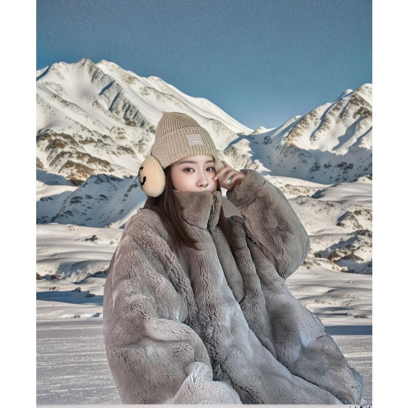 Имитация кроличьего меха рекс женское зимнее новое ароматное пальто плюшевое свободное с капюшоном тренд XXL серый