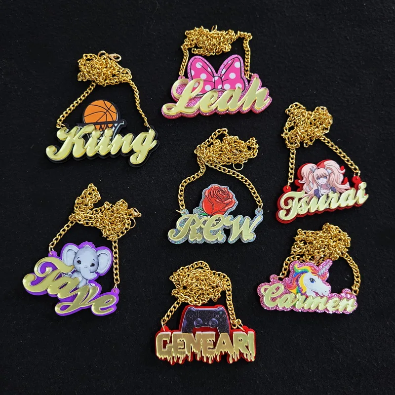Индивидуальная детская табличка, ювелирные изделия на заказ, ожерелья с именем любого мультяшного персонажа, акриловая лазерная фотоколье