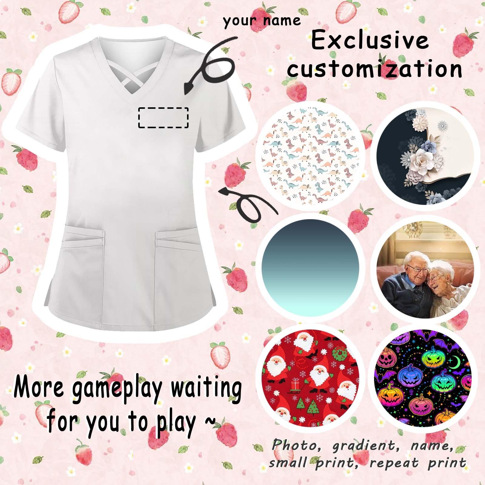 Индивидуальная женская печатная униформа с V-образным вырезом и двойными карманами M белый