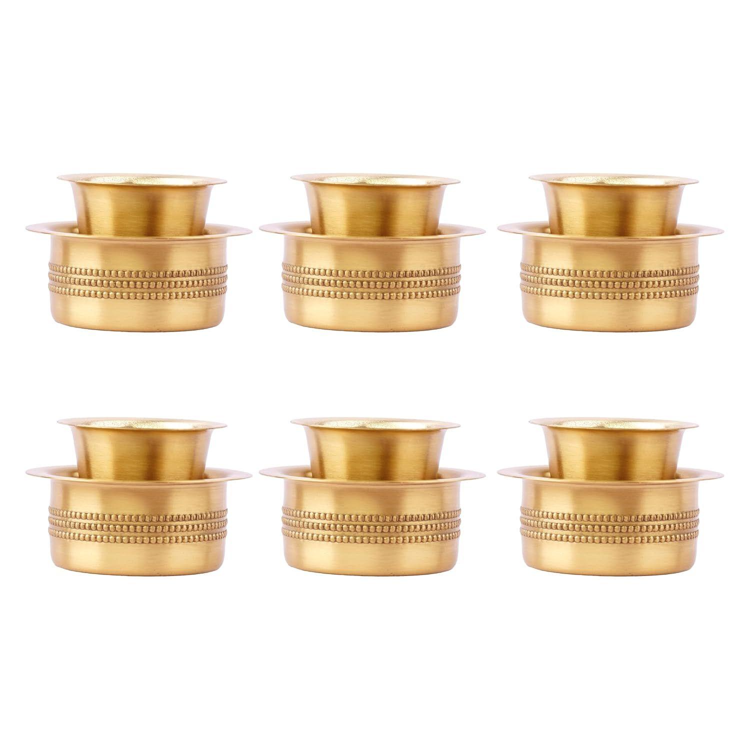 Индийская латунная кофейная чашка Давара Дабара тамблер для подачи фильтрованного кофе, чая Традиционная латунная дабара кумбаконам - В горошек | Матовая - 150 мл (Набор из 6)