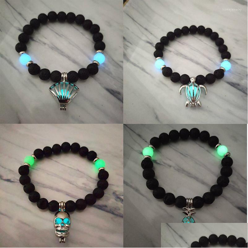 Beaded Strand Classic Gun Luminous Bracelet Natural Volcanic Stone Glow In The Dark Fashion Handmade Jewelry For Men Women Gifts Dro Dh9Jv