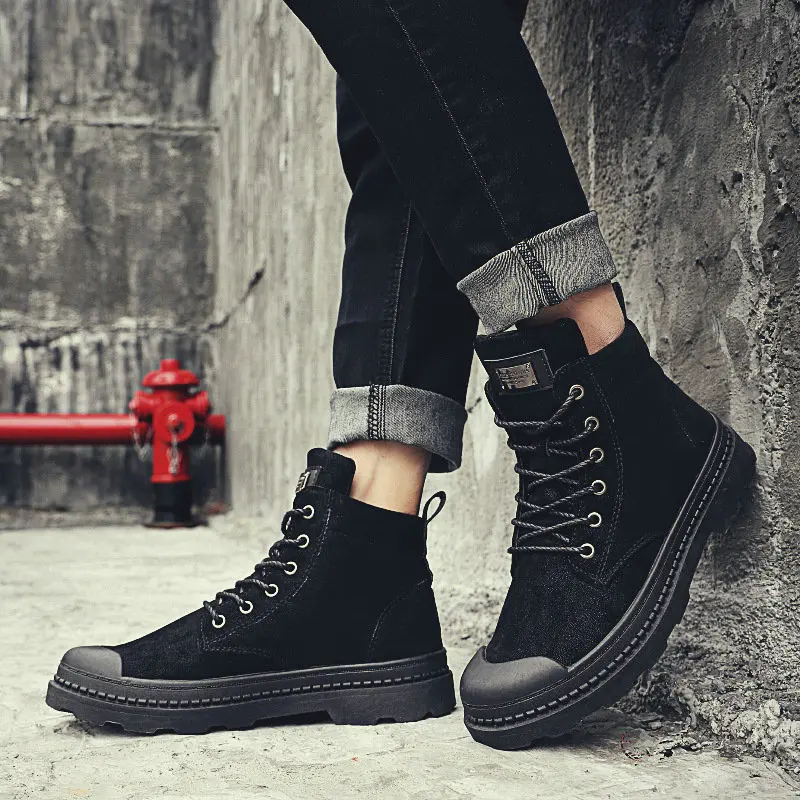 Black Men Boots suede Leather Motorcycle Ankle Boots Men Winter Work Shoes Military for Men Botas A55-86