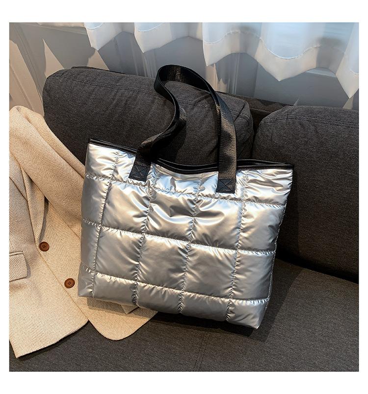 Интернет знаменитость большая вместительная сумка женская сумка новая 2024 повседневная сумка через плечо вышитая нить сумка-тоут простая ins серебряный