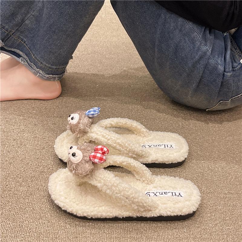 Интернет знаменитость мягкая задняя часть студент пара волосатая перетащить домой нескользящий мультфильм зима толстая задняя часть ins девушка общежитие хлопковые тапочки 40