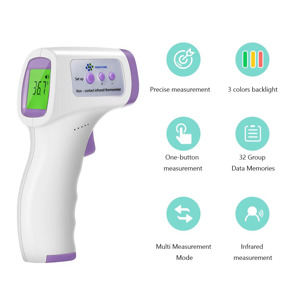 Инфракрасный термометр лба Точный цифровой бесконтактный измеритель температуры с ЖК-дисплеем для младенцев и взрослых фиолетовый