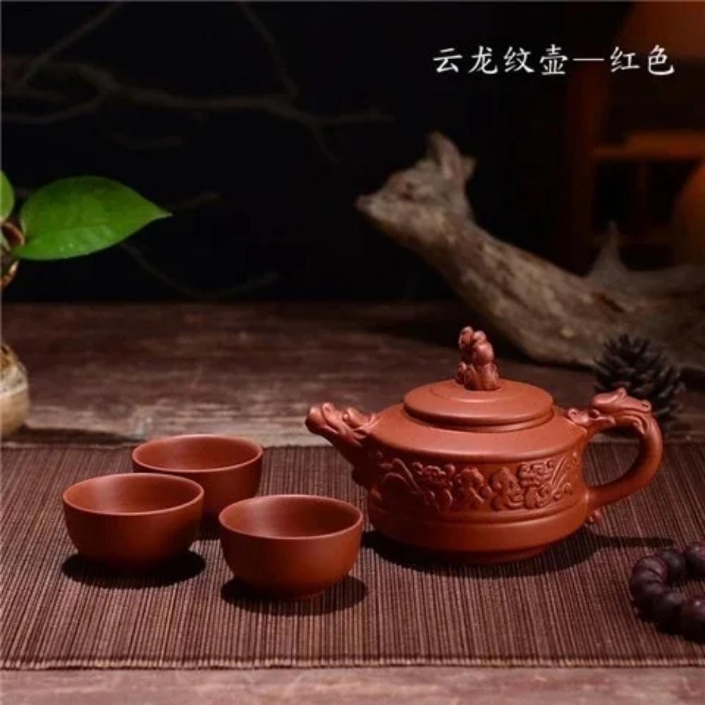 Исинская фиолетовая глина, 1 чайник + 3 чашки, набор из 150 мл, чайник Цзыша, фиолетовая песчаная чайная чашка, можно заваривать пуэр, лунцзин, 4 шт., наборы для чая кунг-фу