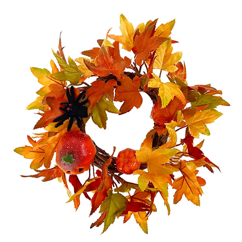 Декоративный венок на Хэллоуин, искусственные кленовые листья, тыква, венок паука для Хэллоуина, гирлянда День благодарения Decor, осень
