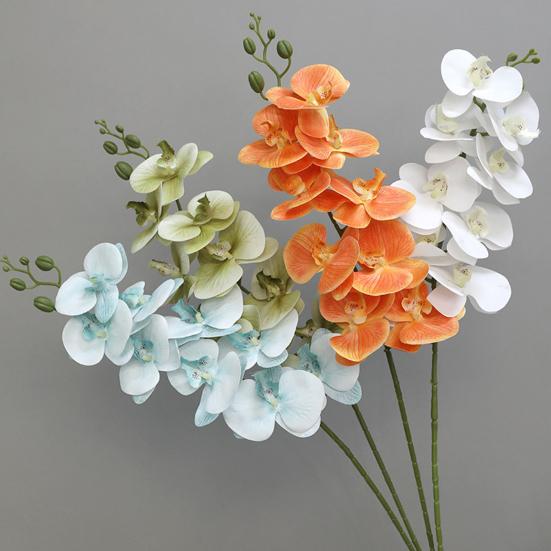 Искусственные орхидеи-мотыльки со стеблем, 9 головок, реалистичные поддельные фаленопсисы, стол для домашнего офиса, центральная часть из искусственного шелка, цветочная ветка, цветочная композиция белый