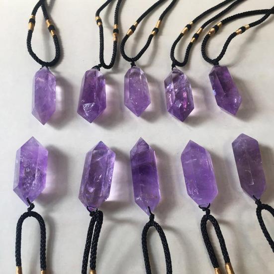 Исцеление точки подвески в виде шестиугольной палочки из искусственного аметиста с двойным концомОжерелье