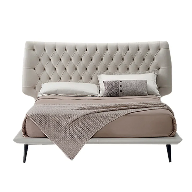 Итальянская светлая роскошная кожаная кровать, импортная двуспальная кровать из воловьей кожи с верхним слоем, кожаная современная минималистичная мягкая кровать для главной спальни