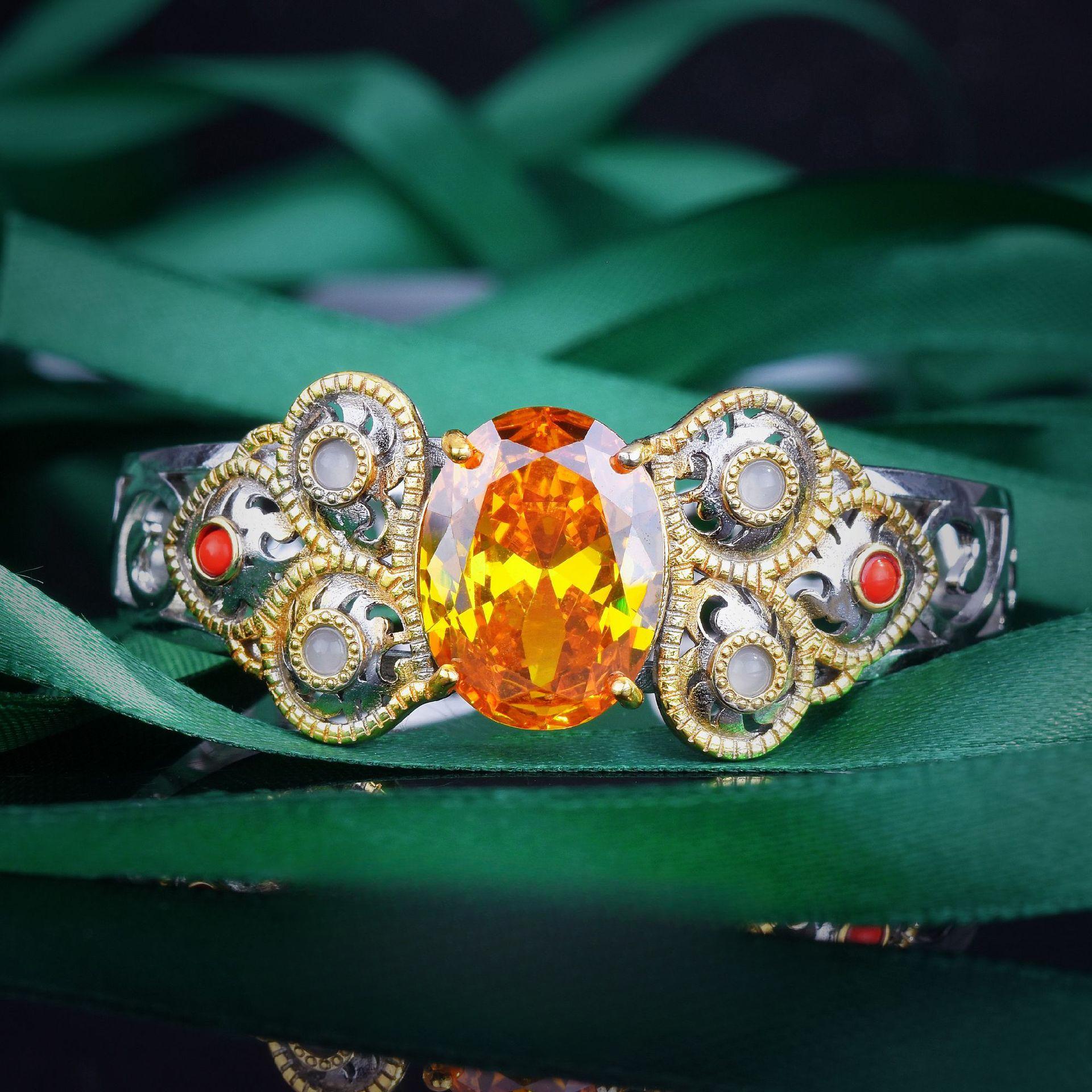 Итальянский ретро-стиль, выдолбленный цветочный шелковый браслет с желтым бриллиантом и цирконом, браслет со сверкающим желтым кристаллом и браслетом для открытия сокровищ